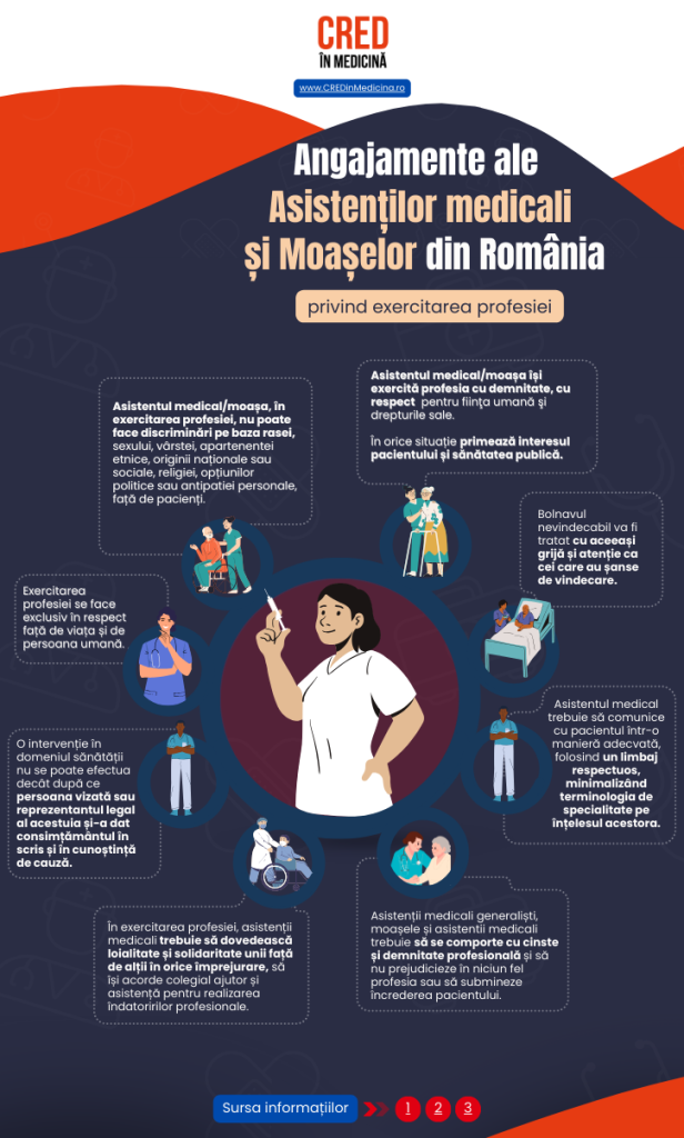 INFOGRAFIC: Angajamente ale Asistenților Medicali și Moașelor din România privind exercitarea profesiei